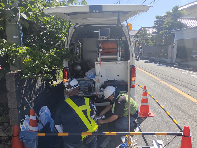 マンホールや下水道管路、水管橋や配水池の点検・調査において劣化や損傷個所の特定を行うと共に、一定のサービスレベルを維持し、ライフサイクルコストの最小化を図るための計画策定まで取り組んでいます。